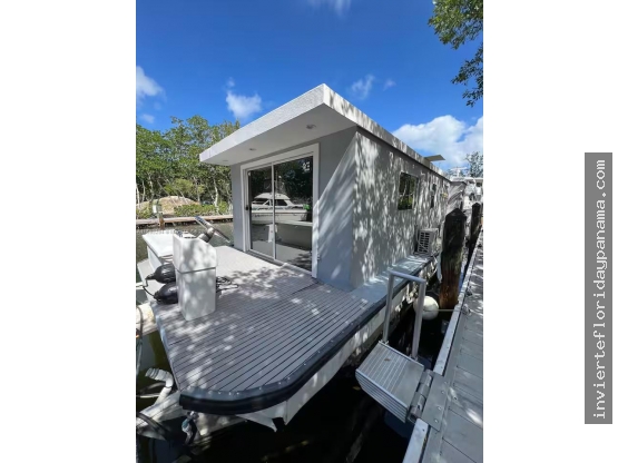 Cozy Manatee Bay houseboat! 44' FEET of protected dock with Tiki Hut/wood deck and a fantastic opportunity to own your own boat slip and boat house! This is a Private Gated Community Marina. Amenities include a Pool, Beach, Ice Machines and Laundry facility. Sleeps 6 with queen bed + 2 sofa beds. Full kitchen, bath, washer/dryer, 55" Smart TV & soundbar. Boat pump out included in the maintenance fee. Enjoy the Tiki area w/ bar, outdoor kitchen, fans, canoe, & paddle board. Dock your boat next to the houseboat. Golf cart to pool, beach, & amenities. Private gated marina, quiet setting, 40 min by boat to ocean, 10 min to Gilbert’s. Sale includes the Boat House and the Dock. Just 35 Minutes from Miami and you are in Paradise. Seller may consider some seller financing. - A11899294